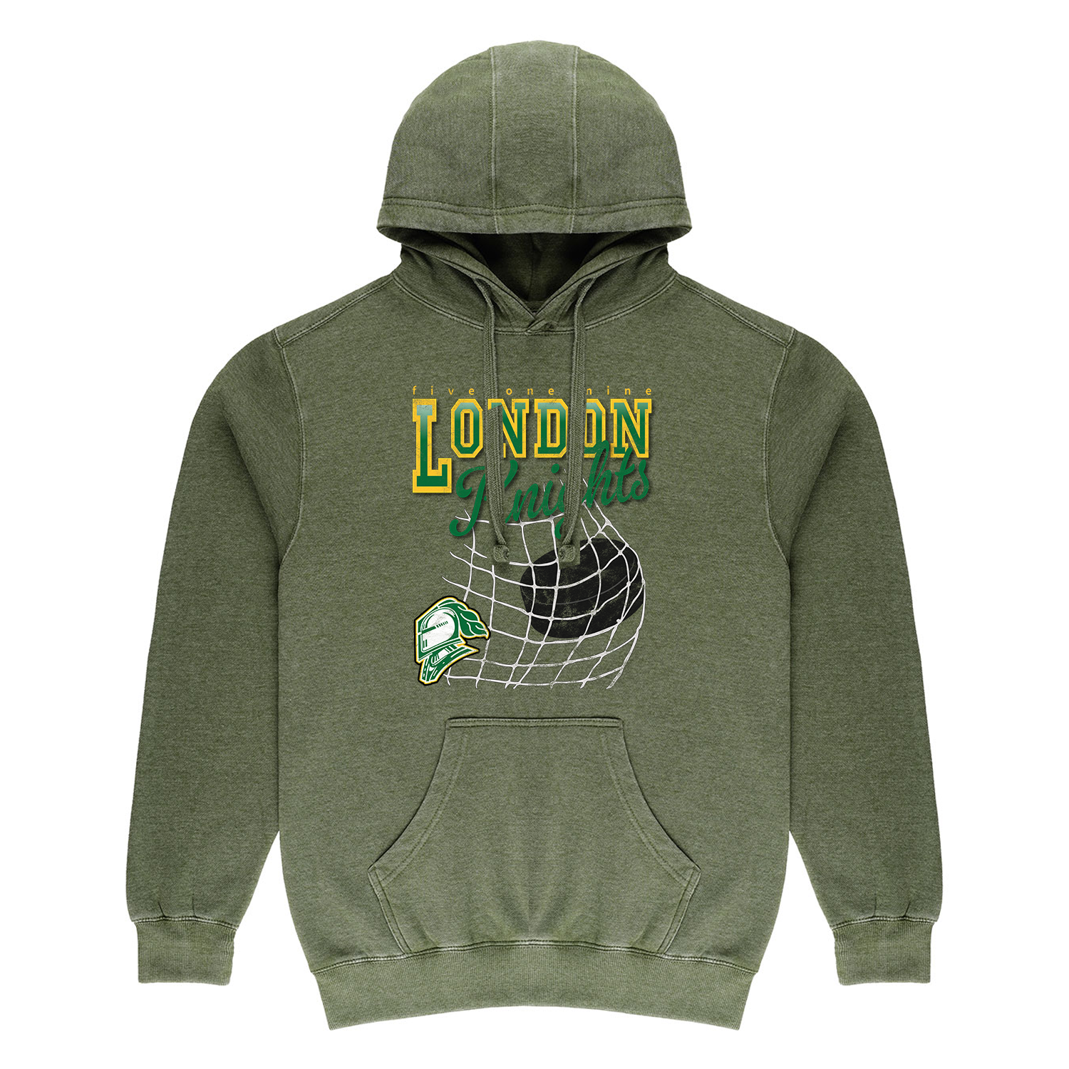 The Knights Netbreaker Vintage Hoodie blends retro hockey vibes with everyday comfort, featuring distressed varsity lettering and a throwback puck-in-net graphic. With a worn-in feel and timeless style, it’s made for die-hard London Knights fans.