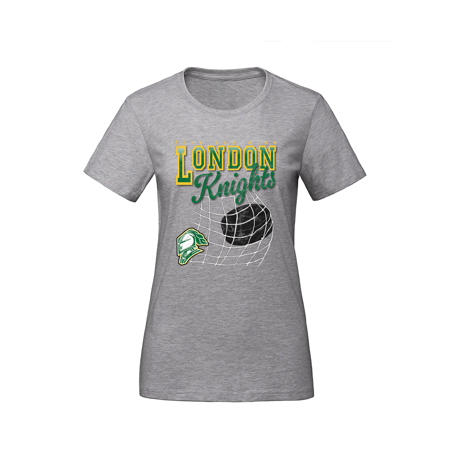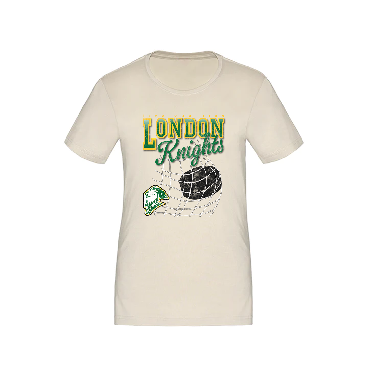 The Knights Netbreaker Tee features bold varsity lettering and a vintage-inspired puck-in-net graphic, bringing retro hockey style to your everyday lineup. Comfortable, classic, and full of team pride—it’s a go-to for every London Knights fan.