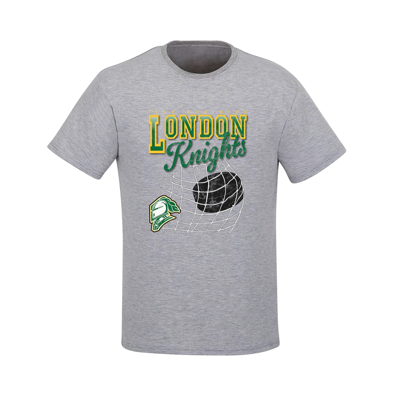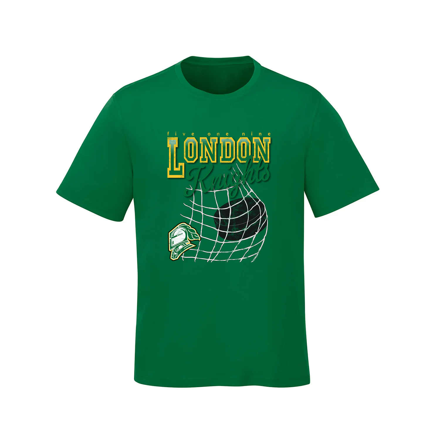 The Knights Netbreaker Tee features bold varsity lettering and a vintage-inspired puck-in-net graphic, bringing retro hockey style to your everyday lineup. Comfortable, classic, and full of team pride—it’s a go-to for every London Knights fan.